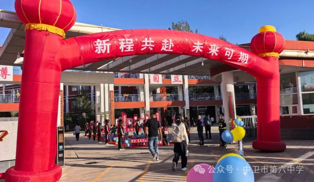 9月1日早晨,校园里洒下了鲜亮的晨光,同学们在晨光中精神饱满地向学校走来。校领导和礼仪同学早已等候在大门前,迎接每一位六中学子。